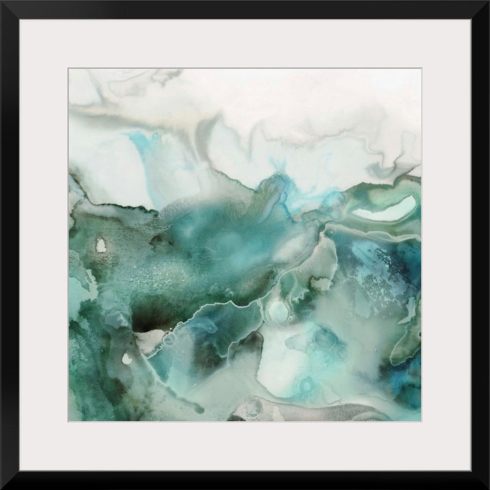 <p>Abstract watercolor artwork of softly blending shades of teal and jade green.</p>
