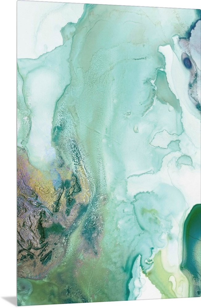 <p>Abstract watercolor artwork of softly blending shades of teal and jade green.</p>