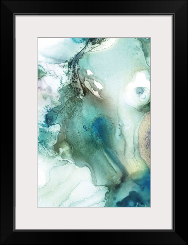 <p>Abstract watercolor artwork of softly blending shades of teal and jade green.</p>