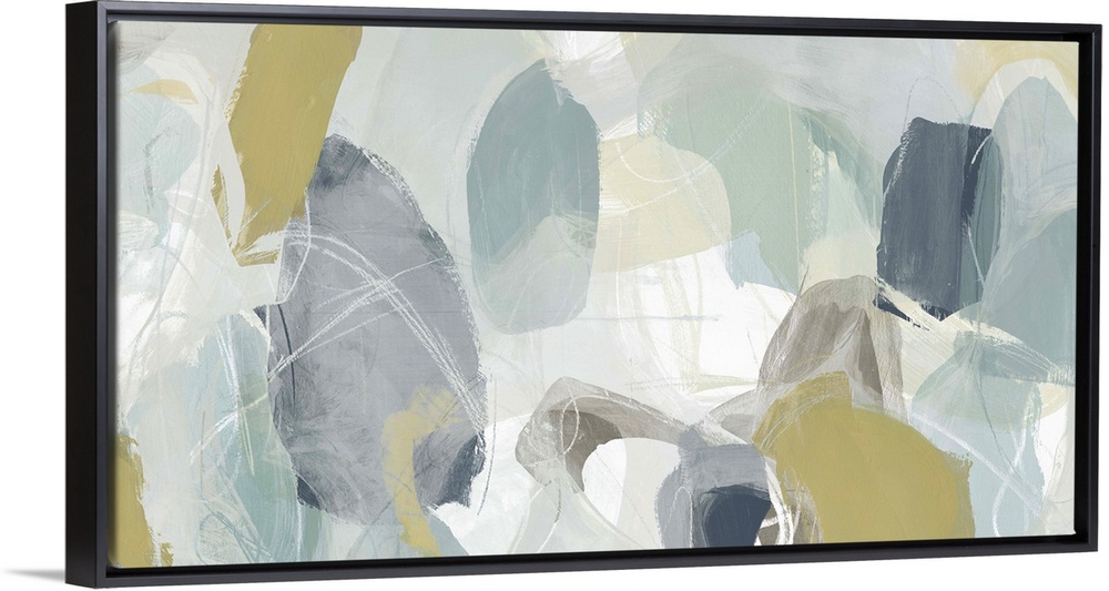 <p>Contemporary abstract painting using muted blue, green and tan tones.</p>