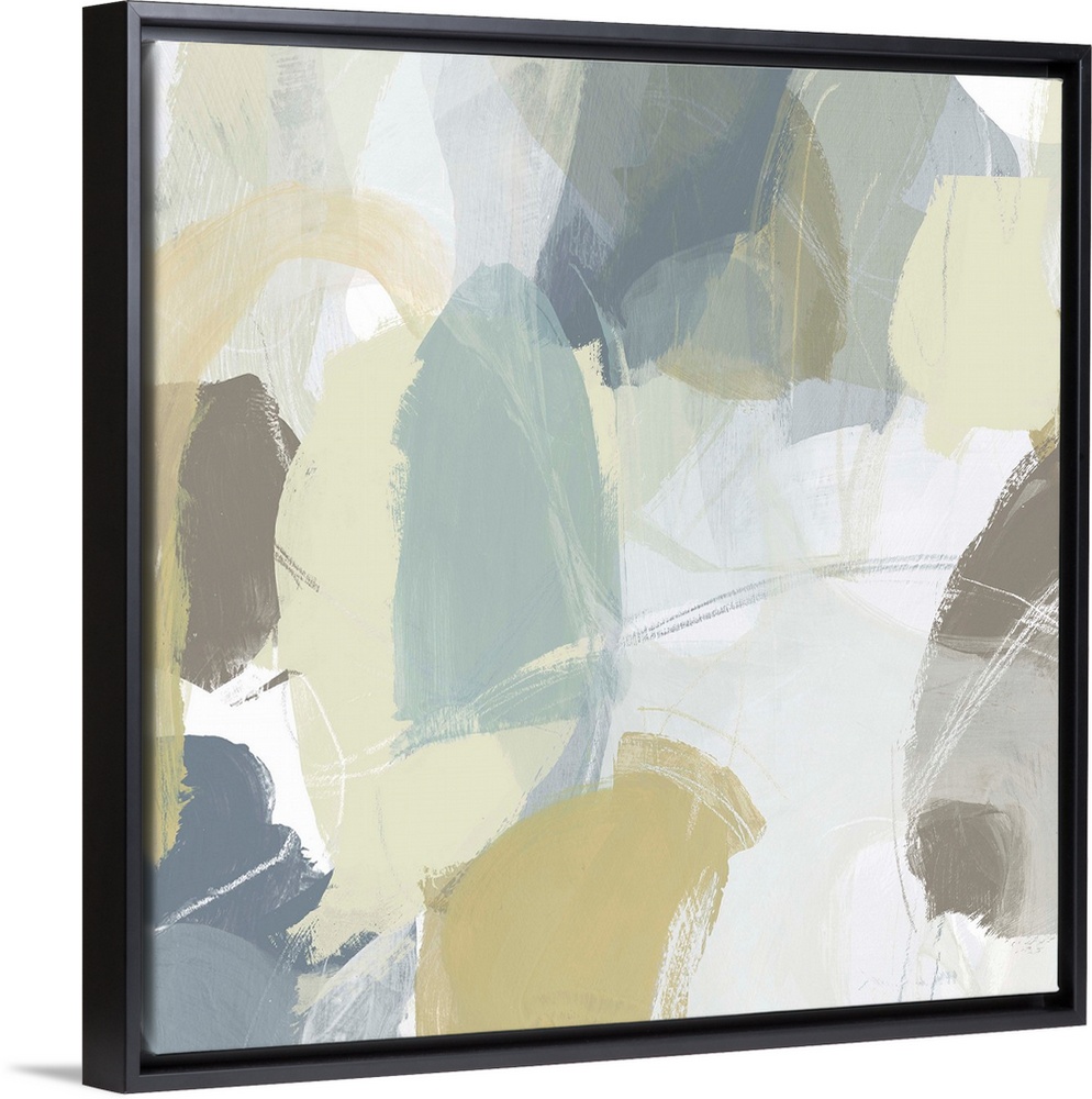<p>Contemporary abstract painting using muted blue, green and tan tones.</p>