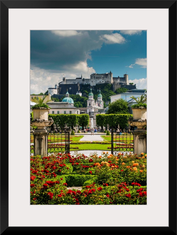 <p>Mirabell gardens with Cathedral and Hohensalzburg castle in the background, Salzburg, Austria.</p>