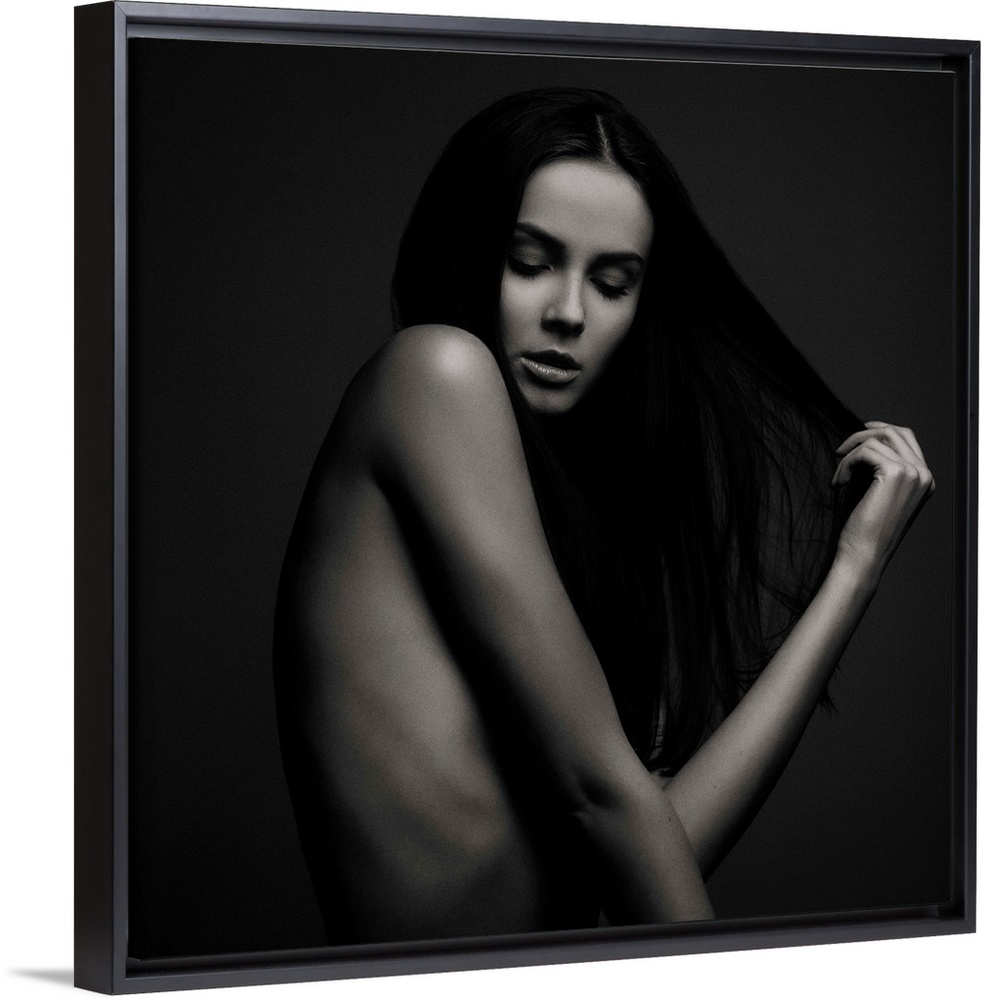 <p>Nude portrait of a beautiful woman with long dark hair.</p>