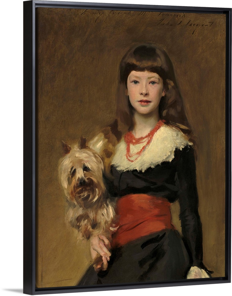 <p>Miss Beatrice Townsend, by John Singer Sargent, 1882, American painting, oil on canvas. The girl holds her pet terrier, in a portrait suggesting a confident and self-possessed 12 year old</p>