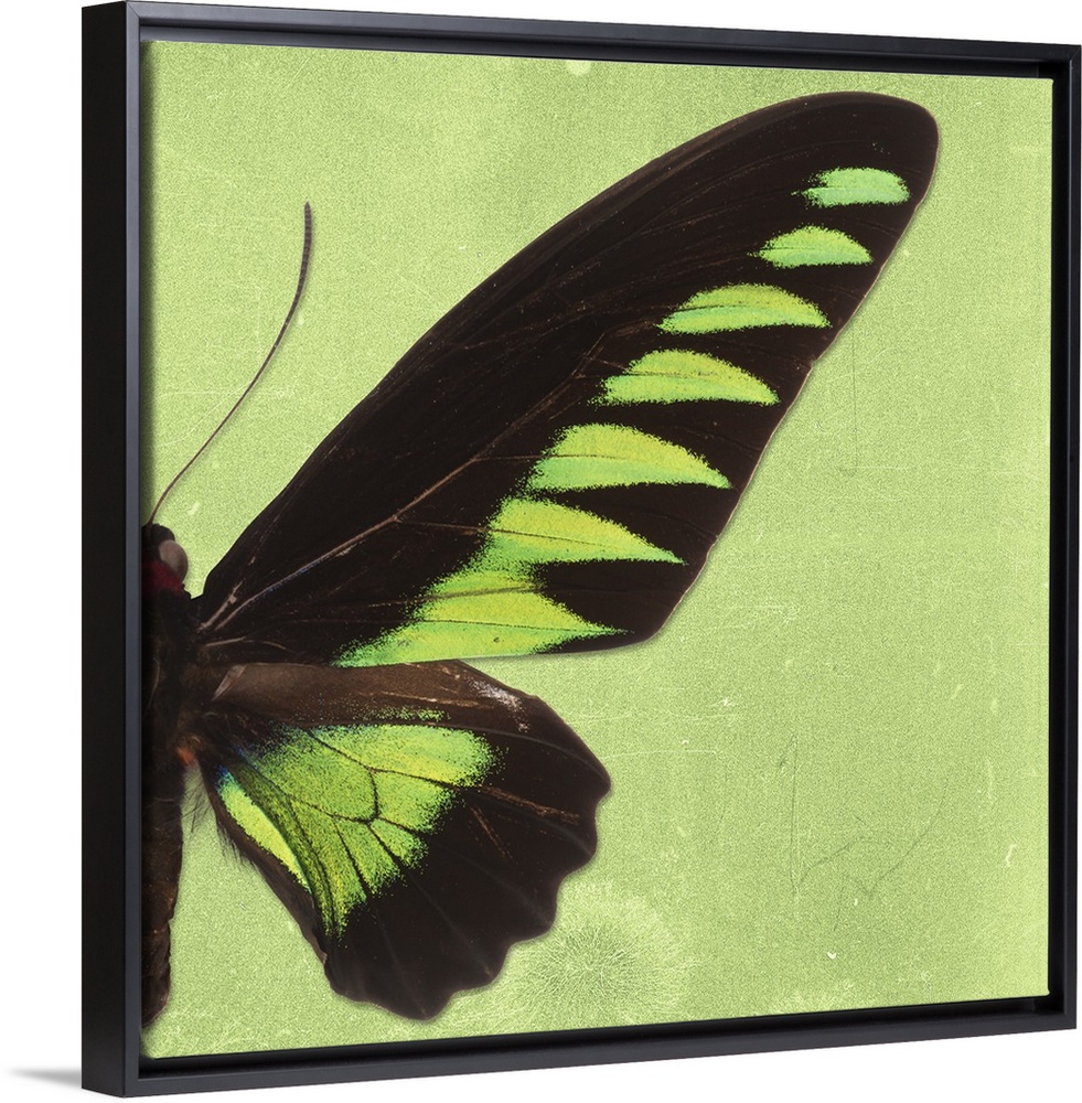 <p>Square photograph with half of a butterfly on a green sparkly background.</p>