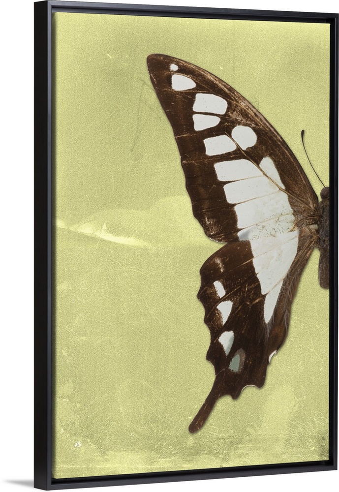 <p>Half of a butterfly on a yellow sparkly background.</p>