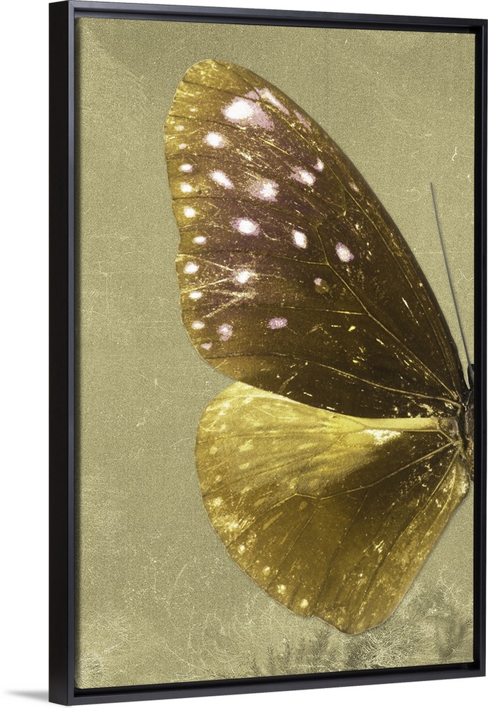 <p>Half of a butterfly on a gold sparkly background.</p>