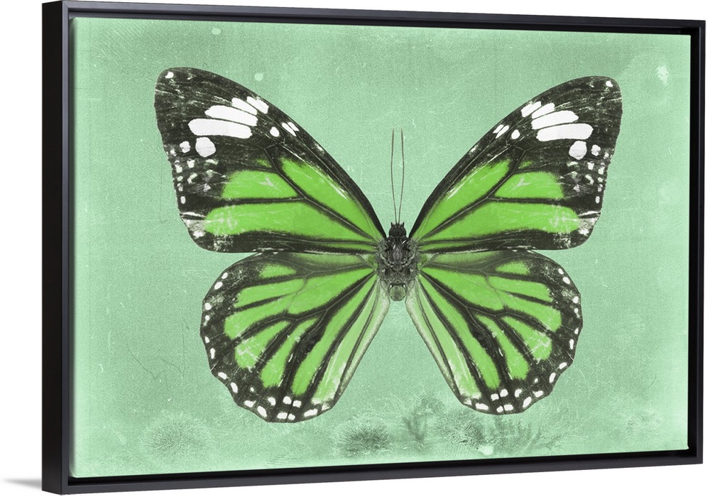<p>Photograph of a butterfly on a green sparkly background.</p>