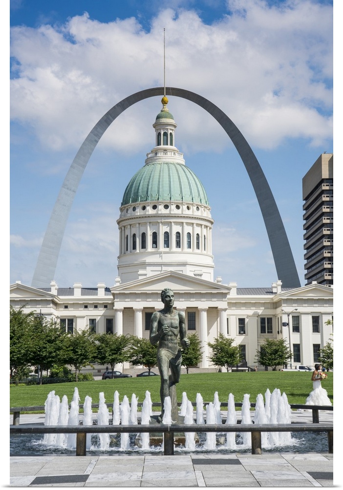 <p>USA, Missouri, St Louis, The Gateway Arch and in foreground the Old Courthouse and Kiener Plaza Park</p>