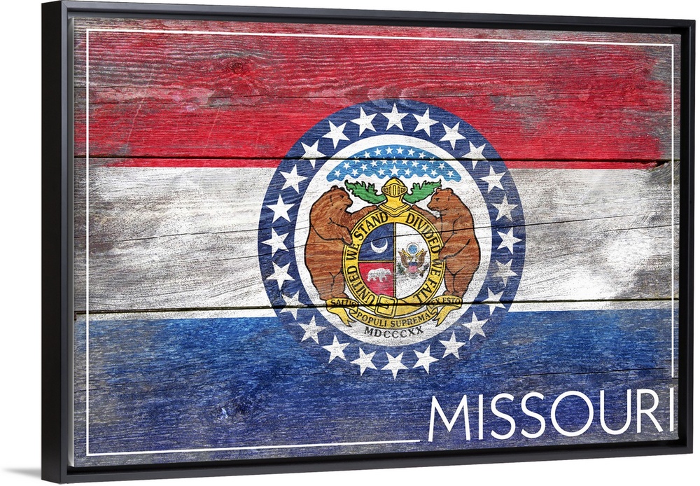 <p>The flag of Missouri with a weathered wooden board effect.</p>