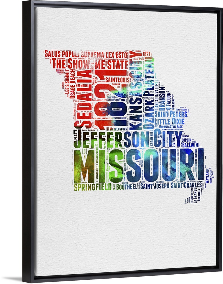 <p>Watercolor typography art map of the US state Missouri.</p>