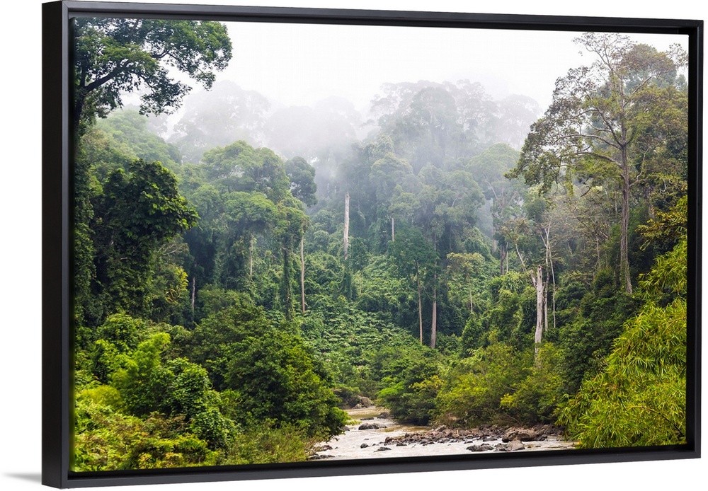 <p>Mist and river through tropical rainforest, Sabah, Borneo, Malaysia.</p>