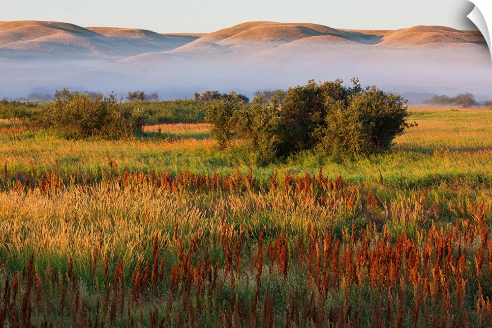 <p>Mist At Sunrise In Frenchman River Valley Of Grasslands National Park, Saskatchewan, Canada</p>