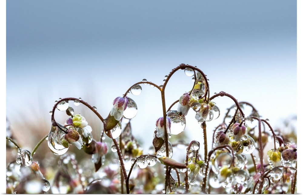 <p>Mist collects on saxifrage blossoms; Elsie, Oregon, United States of America</p>