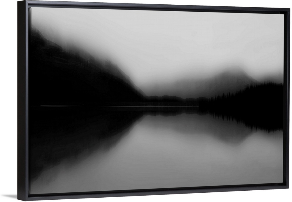 <p>Contemporary artwork of a lake view landscape as a blurred silhouette.</p>