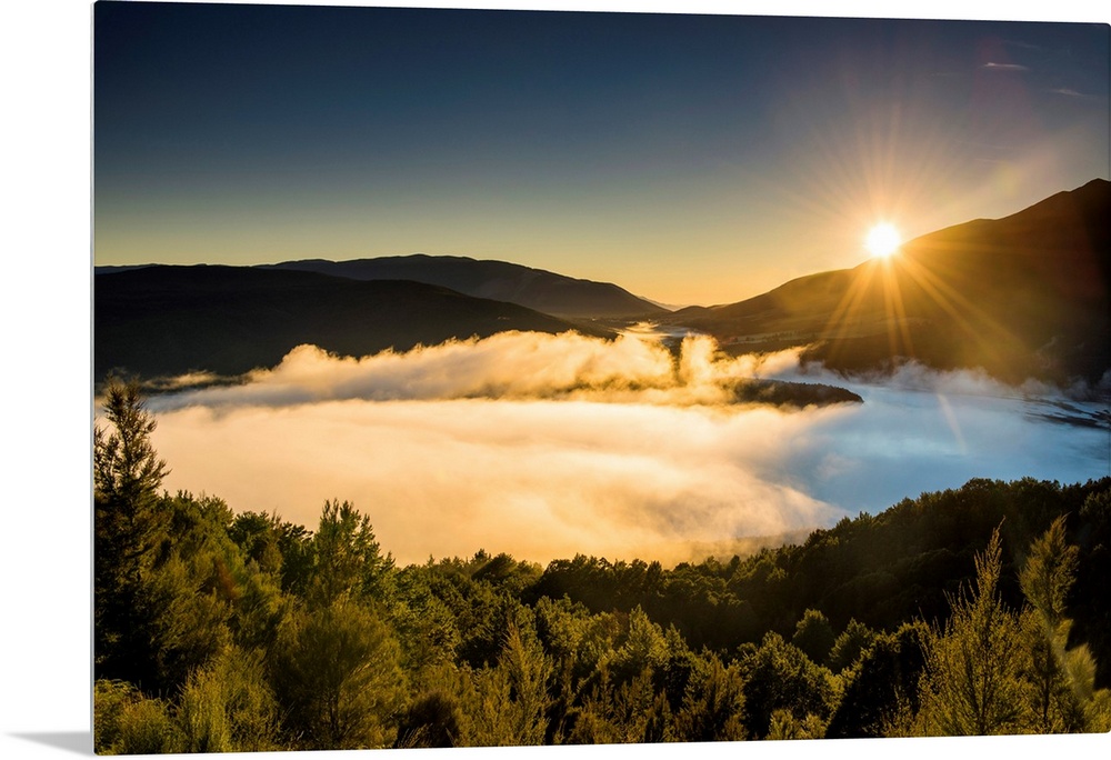 <p>Mist Over Lake Rotoiti At Sunrise, New Zealand</p>