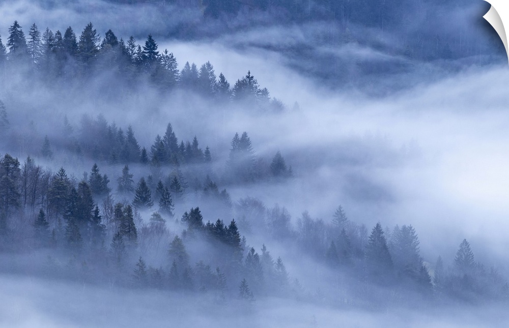 Blue Wall Art Lee Frost Landscapes Mist and Fog Trees Photography Europe Slovenia