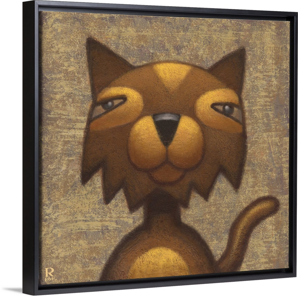 <p>Square artwork of a brown and gold cat on a textured matching background.</p>