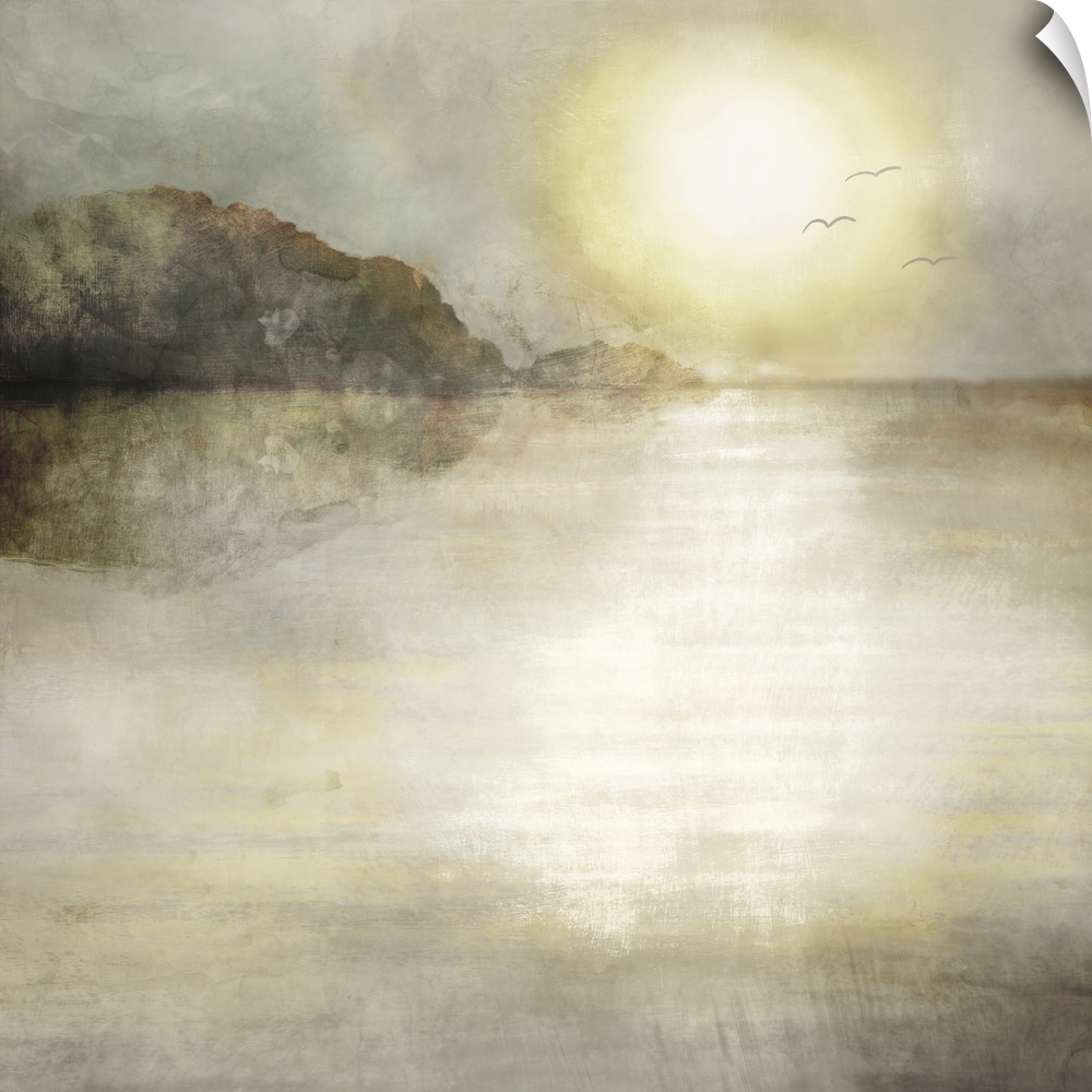 <p>Square contemporary painting of a landscape in natural earth tone colors.</p>