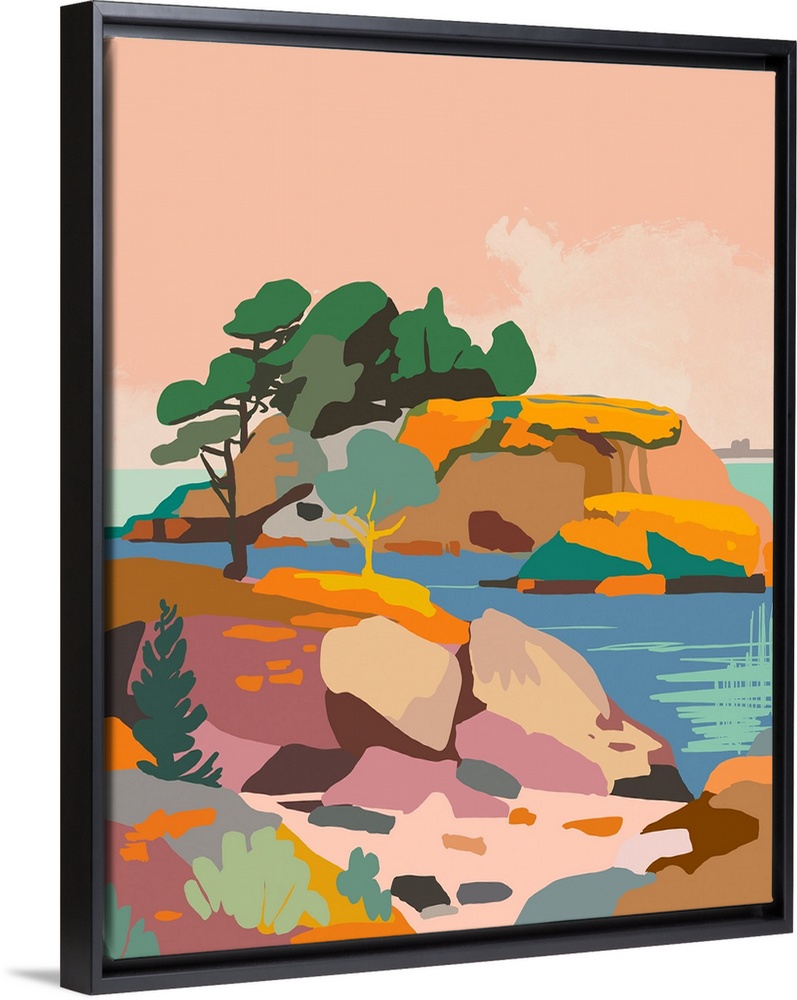 Elevate your home or office décor by adding a modern floating frame to your canvas art print. Finishing your gallery wrapped canvas with a floating frame enhances the beauty and detail of our giclée art prints. Handcrafted from solid wood, and available in multiple finish colors, there’s sure to be a frame to accent your canvas art print.