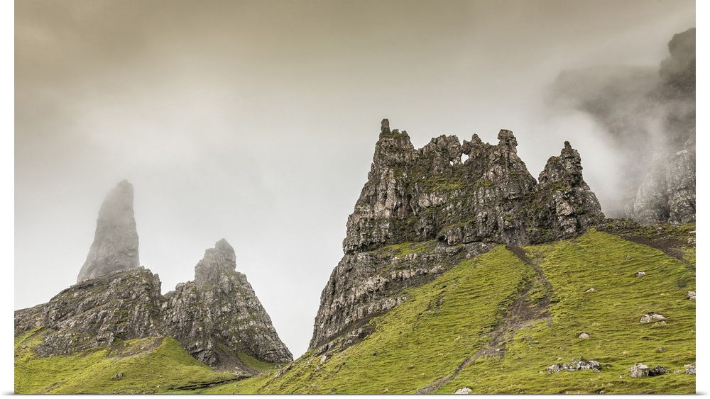 <p>Misty Storr pinnacles on the Isle of Skye.</p>