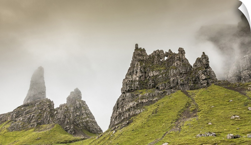<p>Misty Storr pinnacles on the Isle of Skye.</p>