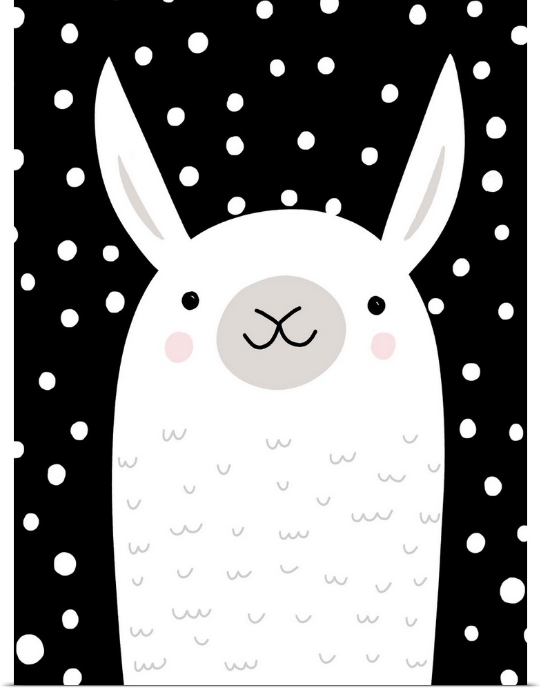 Art Children's Art Black and White Wall Art Decorative Art Painting Victoria Borges Wildlife Llama and Alpaca