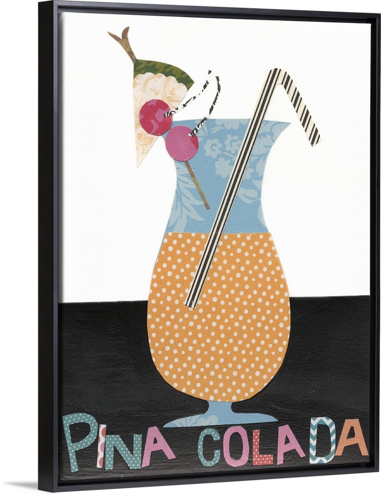 <p>This decorative artwork has double meaning by featuring mixed drinks created with mixed media components. Cut pieces of patterned paper are layered over a painted background.</p>