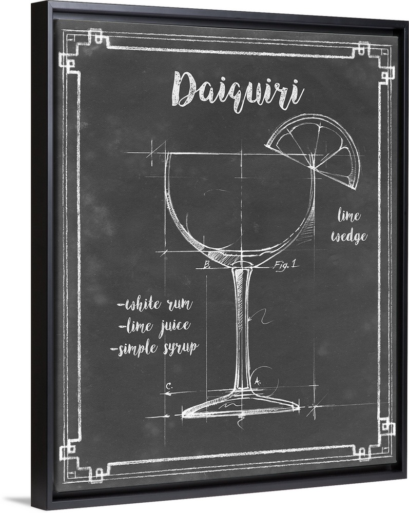 <p>Blueprint style diagram and recipe of a Daiquiri cocktail.</p>