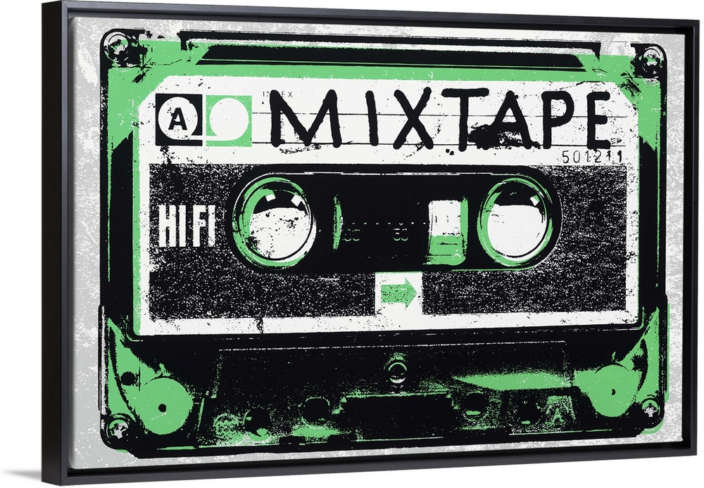 <p>Contemporary pop art style artwork of a mixtape cassette against a green background.</p>