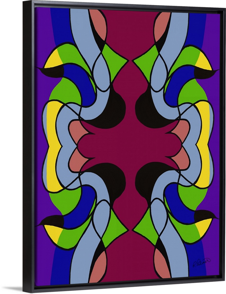<p>A modern design of curved shapes in deep, jewel-toned colors of green, purple, red and yellow.</p>