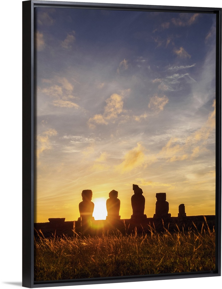 <p>Moais in Ahu Vai Uri at sunset, Tahai Archaeological Complex, Rapa Nui National Park, Easter Island, Chile</p>