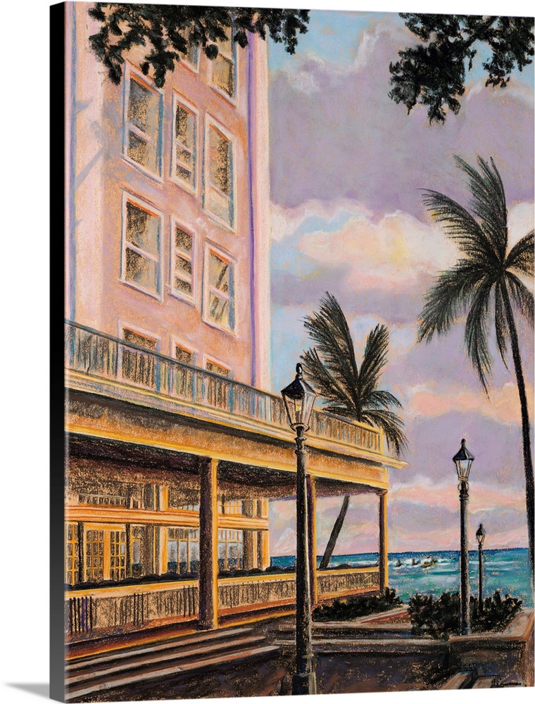<p>Moana At Sunset, Hawaii, Oahu, Town At Dusk And Oceanview (Acrylic Painting).</p>