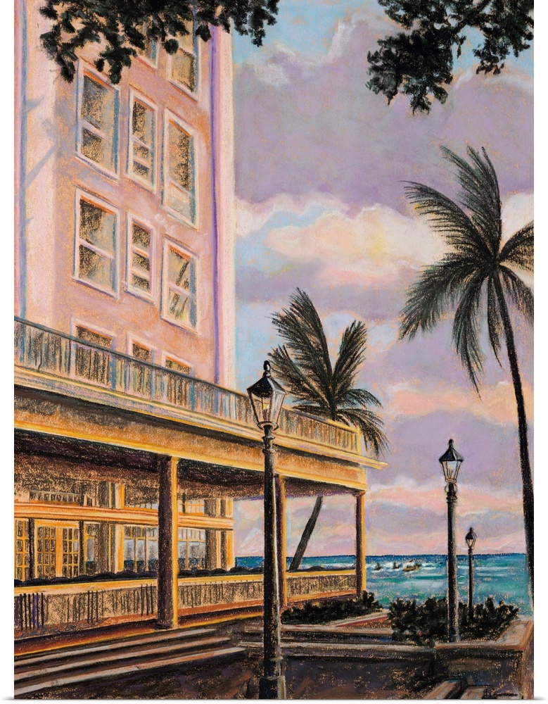 <p>Moana At Sunset, Hawaii, Oahu, Town At Dusk And Oceanview (Acrylic Painting).</p>