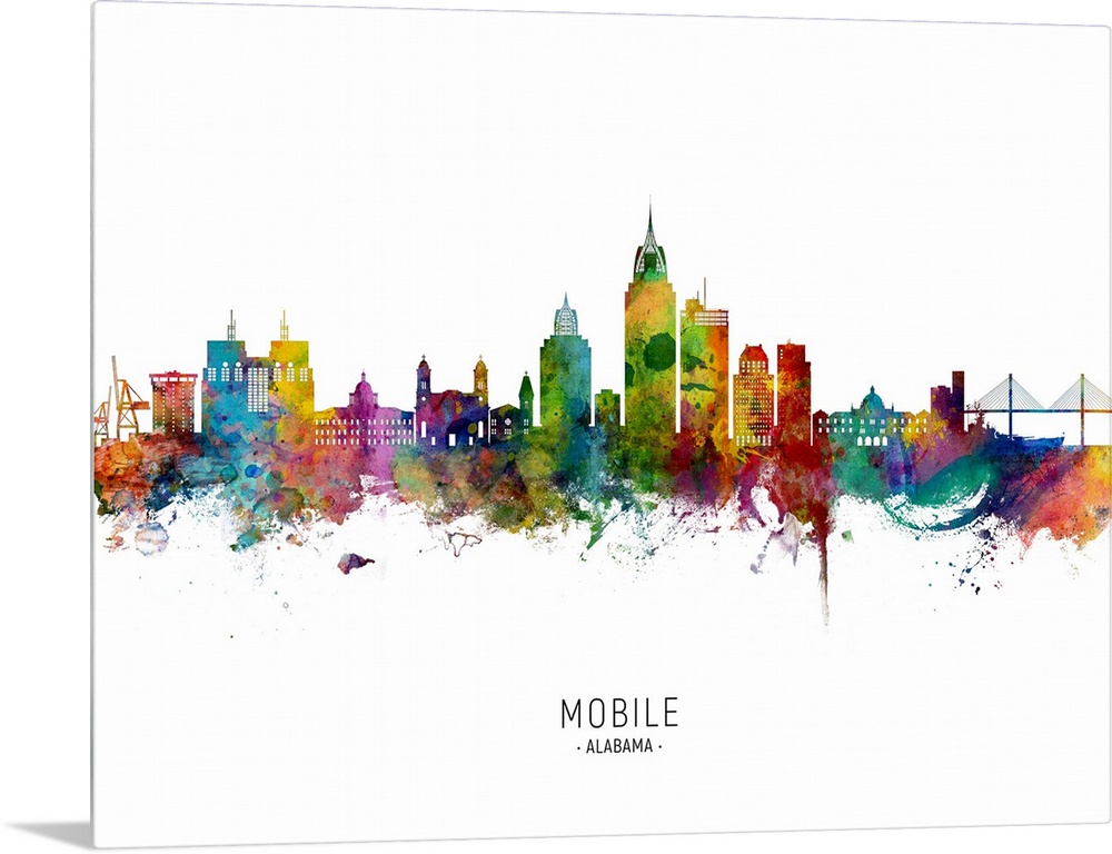 <p>Watercolor art print of the skyline of Mobile, Alabama</p>