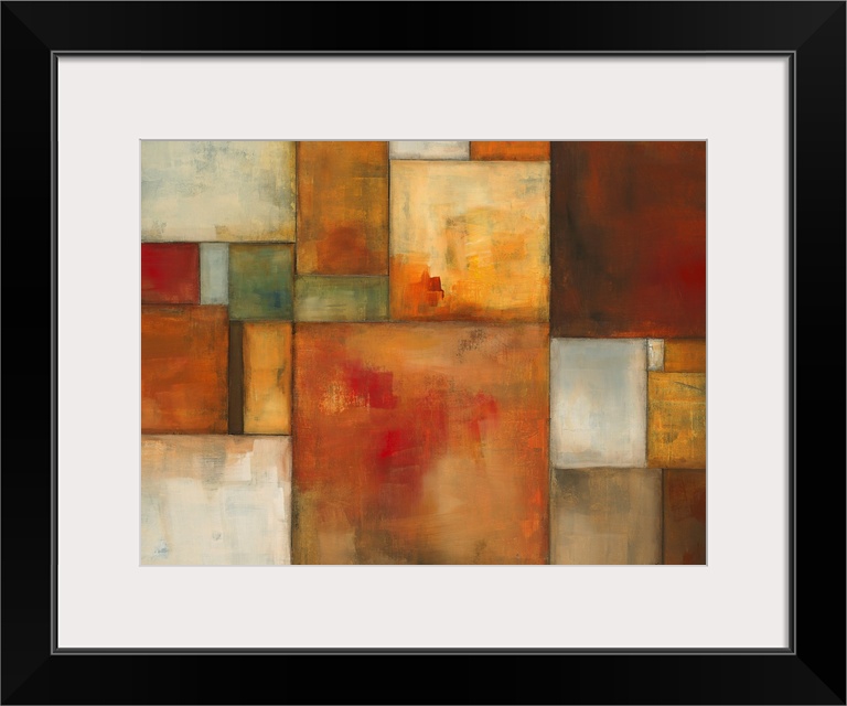 <p>Contemporary painting of squares and rectangles of different sizes and colors positioned together to make one rectangle.</p>