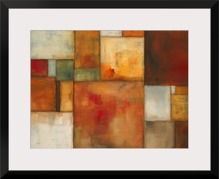 <p>Contemporary painting of squares and rectangles of different sizes and colors positioned together to make one rectangle.</p>