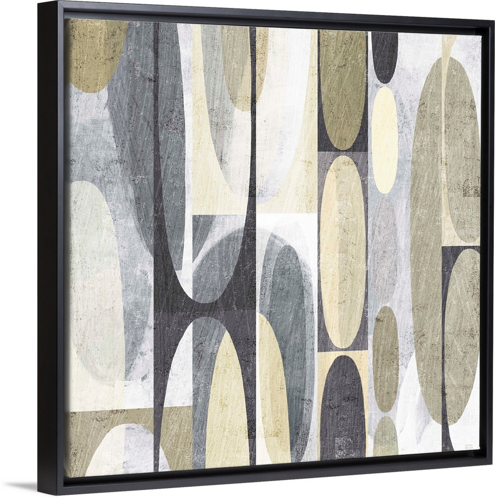 <p>Neutral colored mid century modern decor with layered shapes.</p>