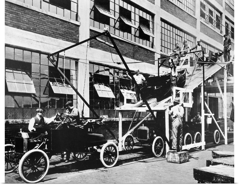 <p>The last stage of the Model T assembly line at the Ford automobile plant in Highland Park, Michigan. Photograph, 1913.</p>