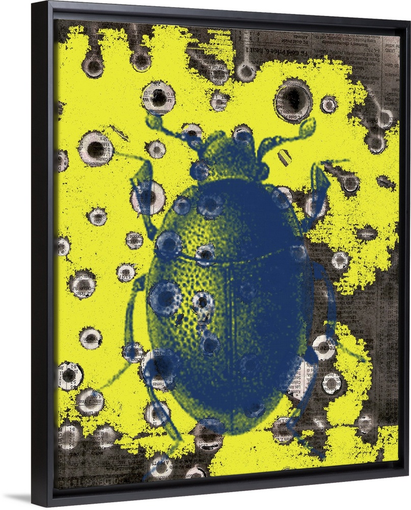 Art Contemporary Art Wildlife Graphic Art Mixed Media Art Jan Weiss Wildlife Insect and Arachnid Beetle Yellow Wall Art