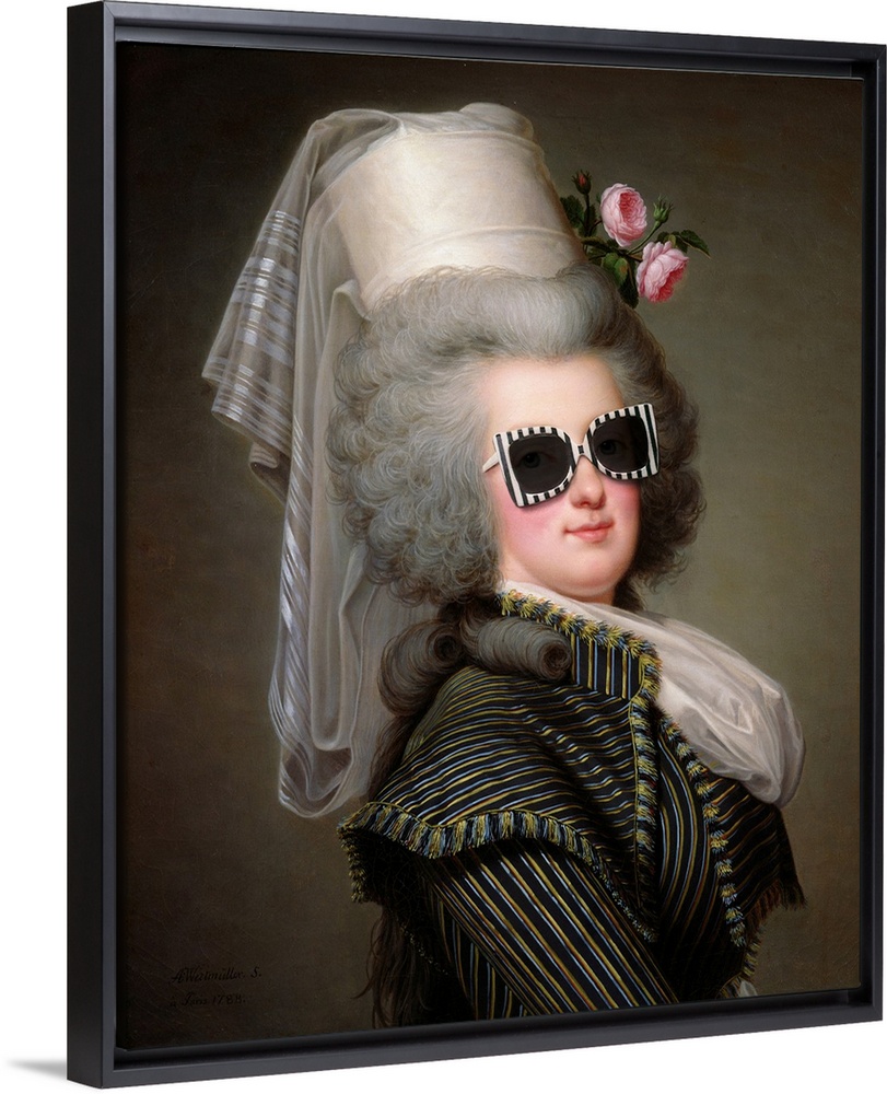 <p>A modern version of a portrait of Marie-Antoinette in sunglasses.</p>