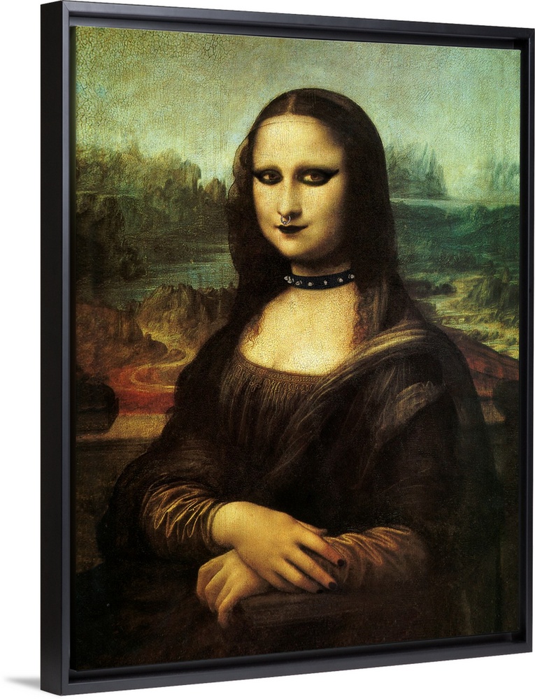 <p>A version of the Mona Lisa by Leonardo da Vinci, in modern gothic dress.</p>