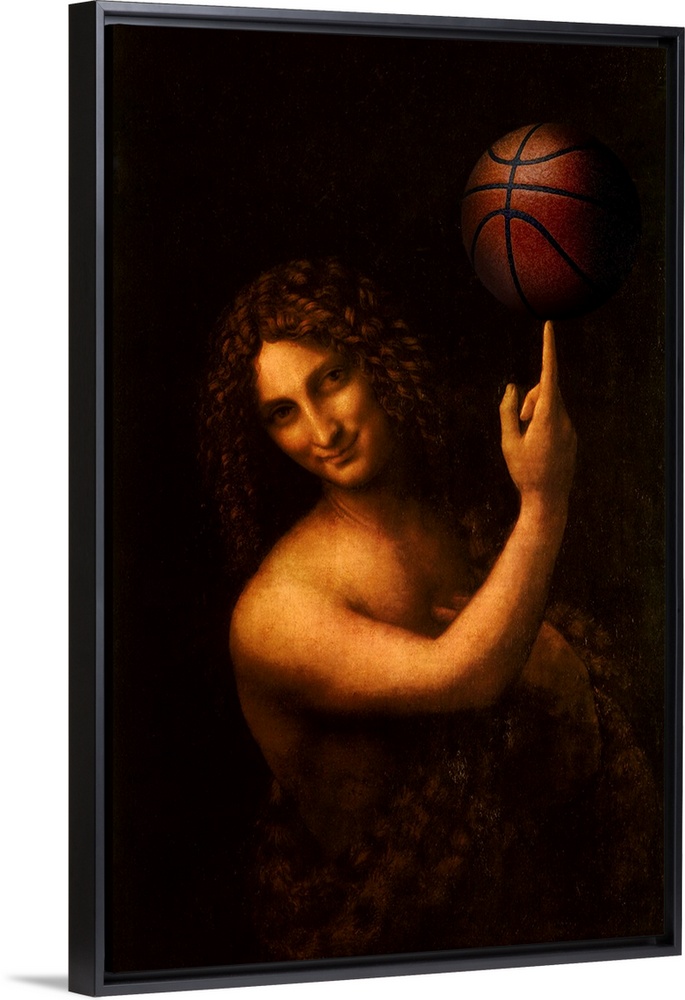<p>A modern version of St. John the Baptist by Leonardo da Vinci, with a basketball.</p>