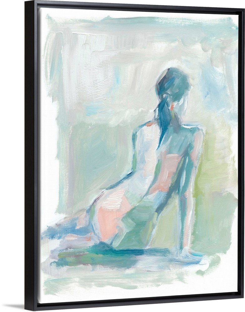 <p>Contemporary abstract figure study of the female nude in blues and greens.</p>