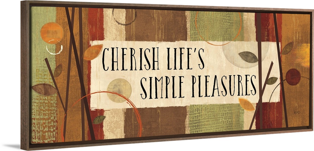 <p>Branches and leaves over autumn colors surrounding the phrase "Cherish Life's Simple Pleasures."</p>