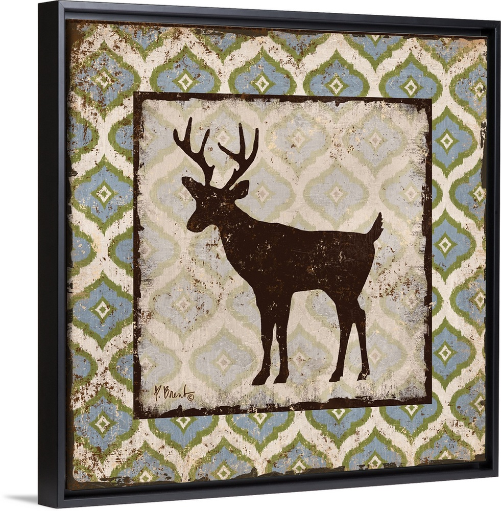 <p>Decorative square artwork featuring a silhouetted deer on a boho pattern.</p>