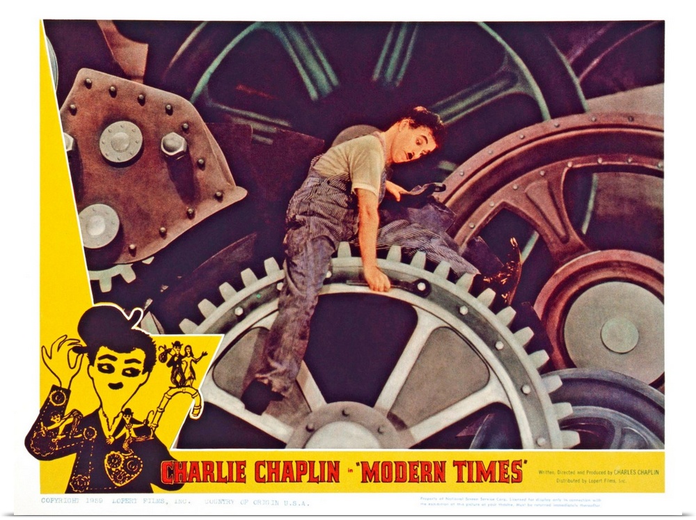 <p>MODERN TIMES, US lobbycard, Charlie Chaplin, 1936.</p>