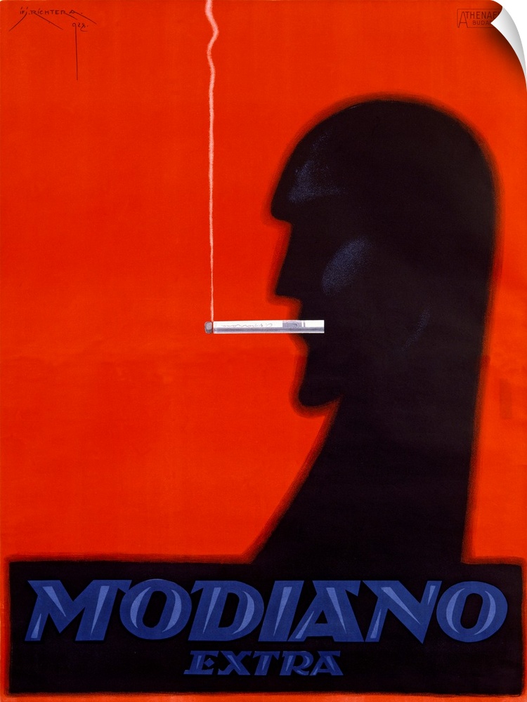 <p>Old print advertising a cigarette brand. There is a silhouette of man with a smoking cigarette in his mouth.</p>