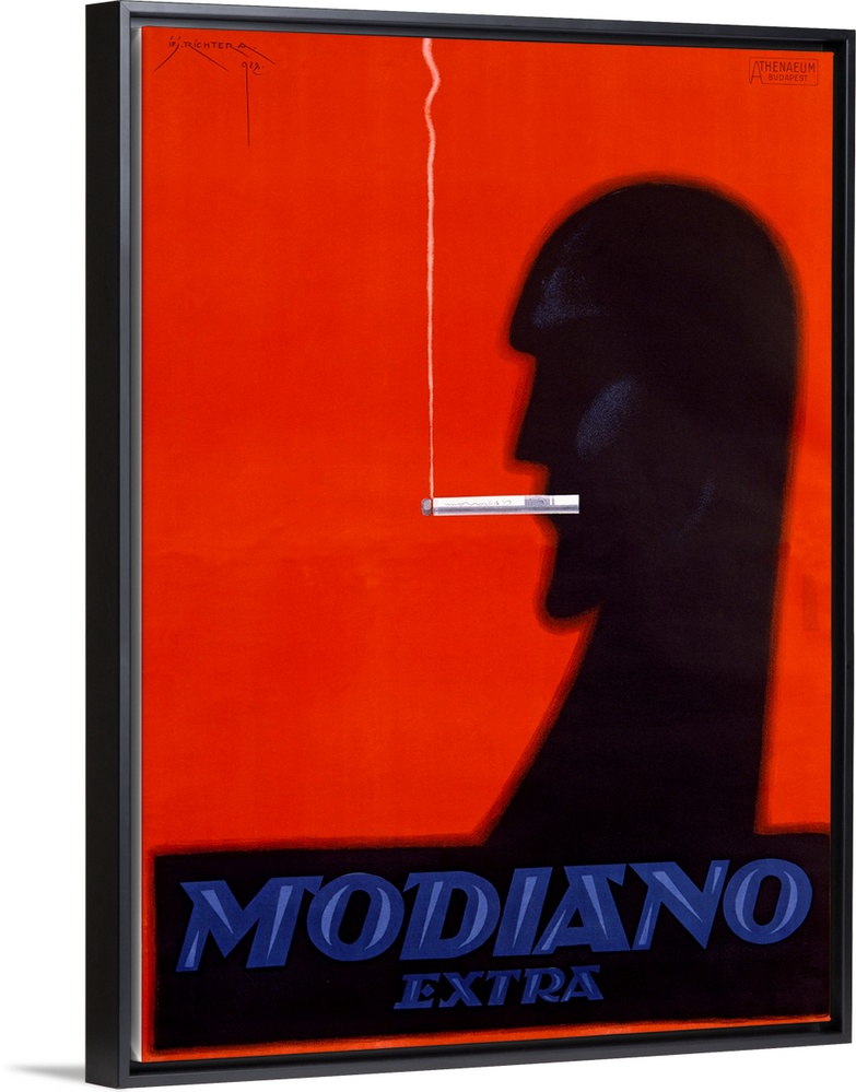 <p>Old print advertising a cigarette brand. There is a silhouette of man with a smoking cigarette in his mouth.</p>