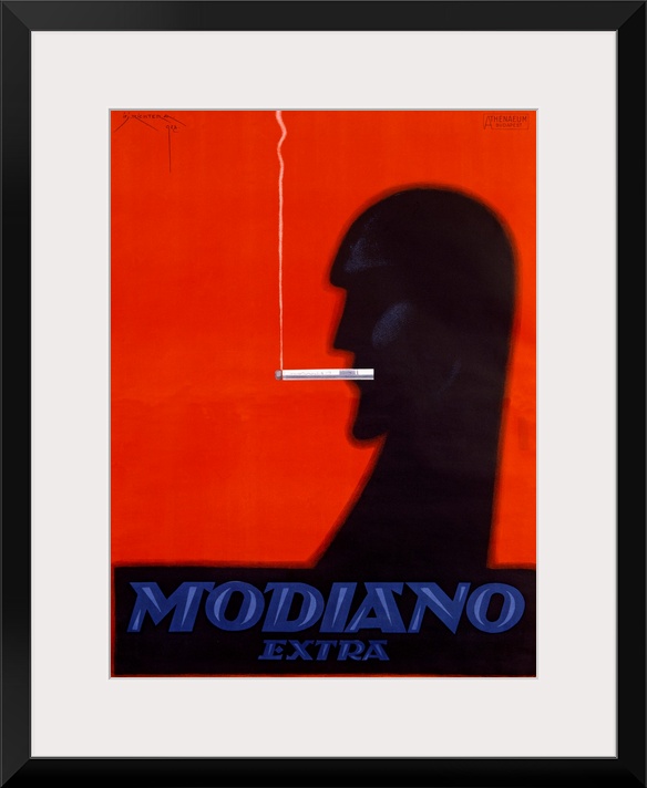 <p>Old print advertising a cigarette brand. There is a silhouette of man with a smoking cigarette in his mouth.</p>
